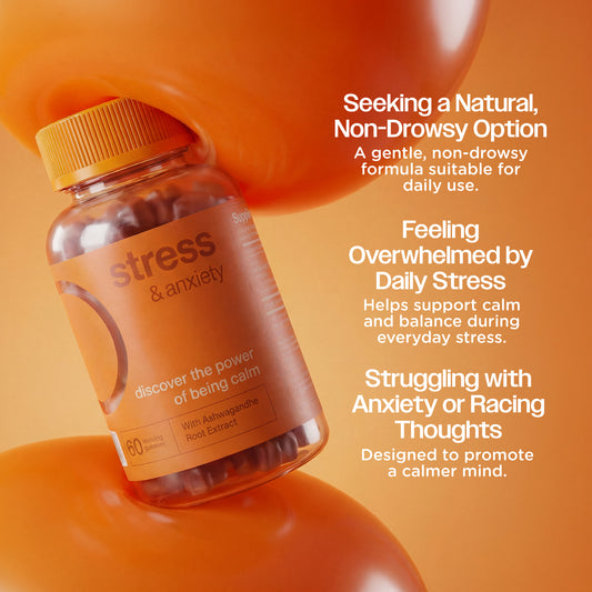 Feeling overwhelmed or anxious? Our Stress Gummies are here to help. With natural ingredients like ashwagandha, these gummies are designed to calm your mind and help you take on the day with a sense of balance and relaxation.